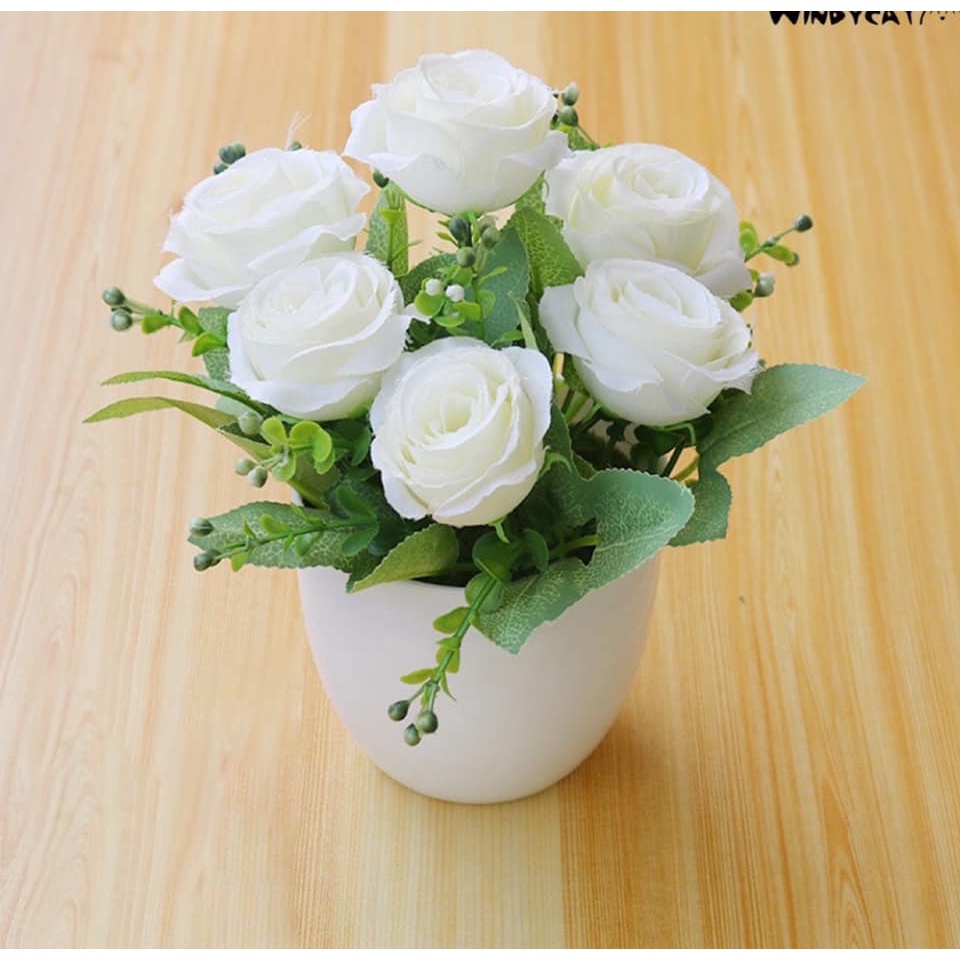 - Giá của sản phẩm bao gồm 1 bình nhựa, và cành hoa hồng