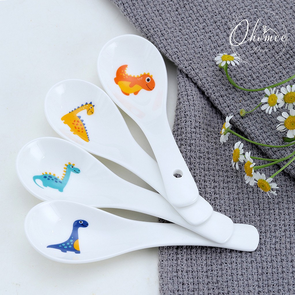 Nhà cửa & Đời sống > Bộ đồ bàn ăn > Tô || [LẺ] Set bát và thìa ăn gốm sứ cao cấp in hình khủng long đẹp, dễ thươngCòn hàng
