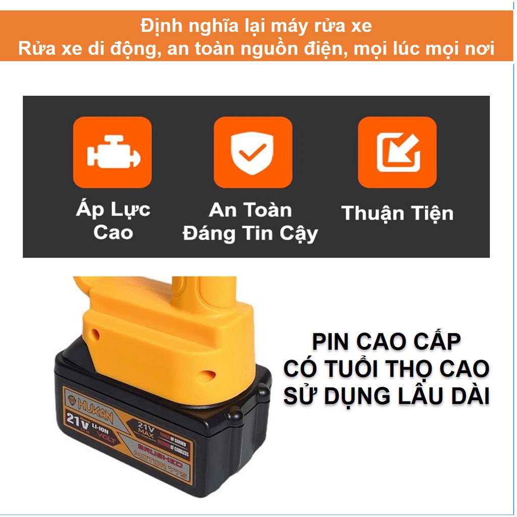 Nhà cửa & Đời sống > Dụng cụ & Thiết bị tiện ích > Dụng cụ > Máy rửa áp lực nước || Máy rửa xe pin HukanCòn hàng