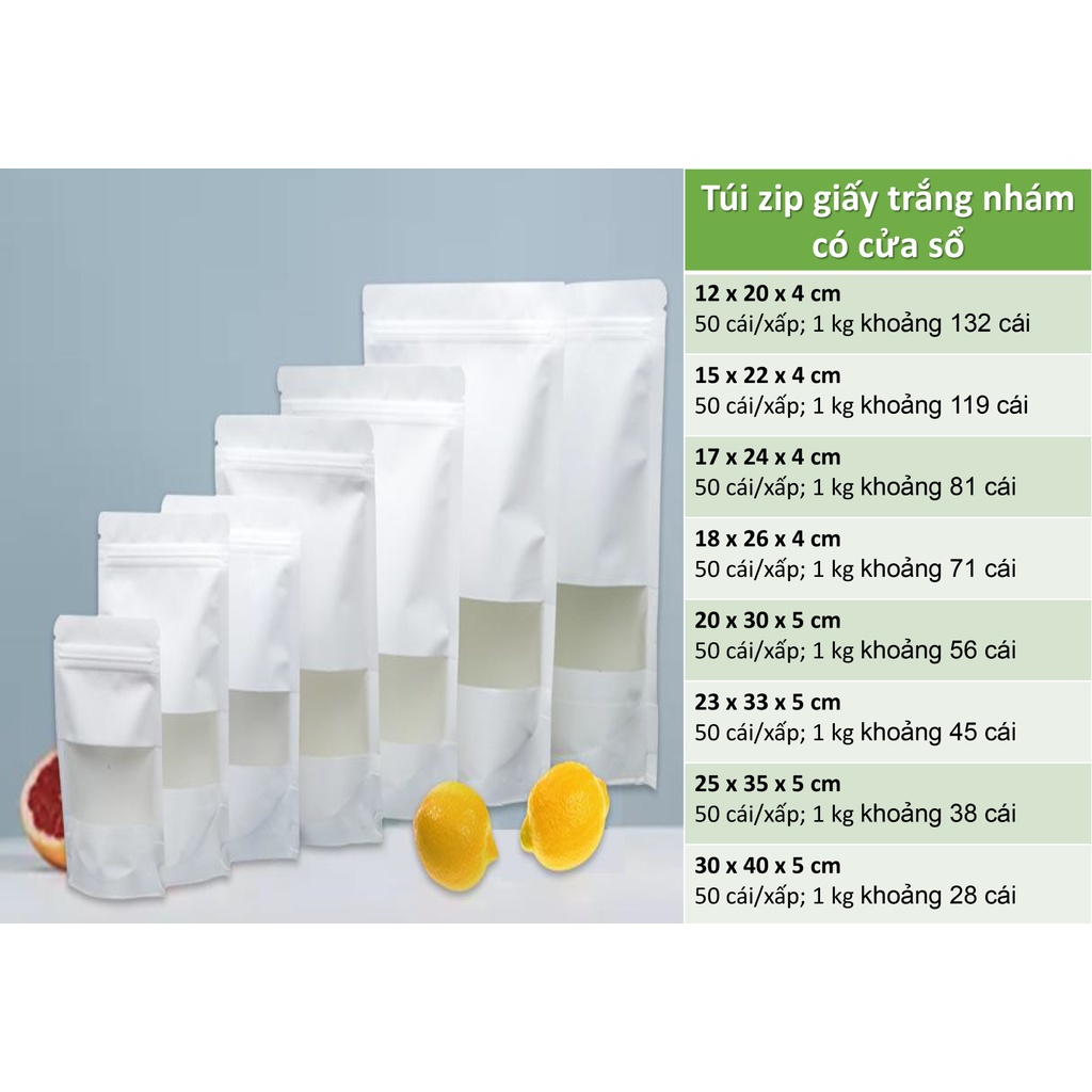 Túi zip đựng thực phẩm giấy trắng nhám có cửa sổChi tiết sản phẩm: