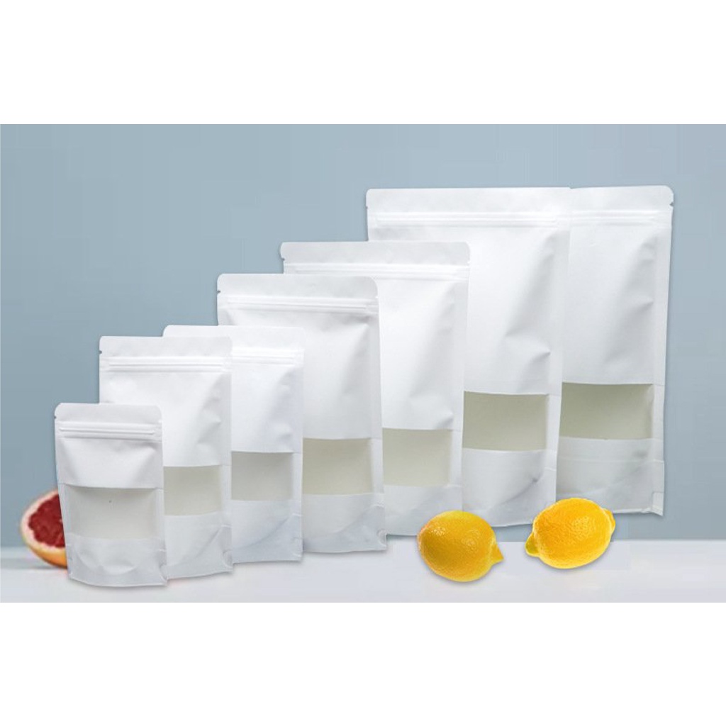 Giới thiệu 50 cái túi zip đựng thực phẩm giấy trắng nhám có cửa sổ đáy đứng
