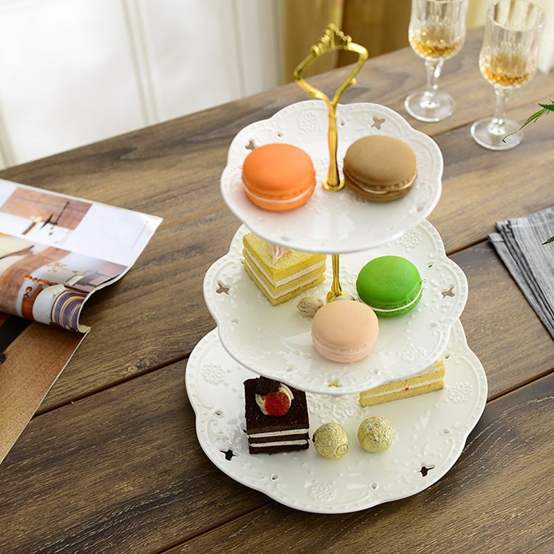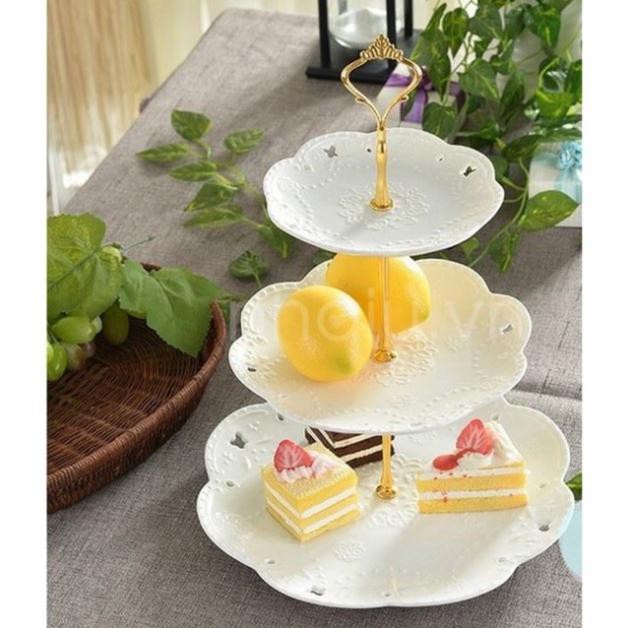 Dùng đặt hoa quả trên ban ăn rất đẹp sang trọngBộ khay sứ pancake 3 tầng hình tròn