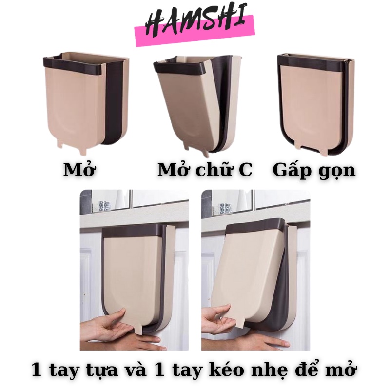 Thùng rác mini gấp gọn thông minh nhựa treo tủ bếp Hamshi TR01
