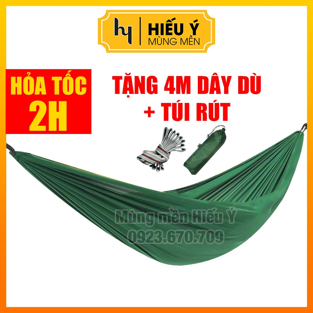 [TẶNG 4M DÂY] Võng dù Thái Lan 2 lớp túi rút dài 2m2 - ẢNH THẬT | Mùng mền Hiếu Ý