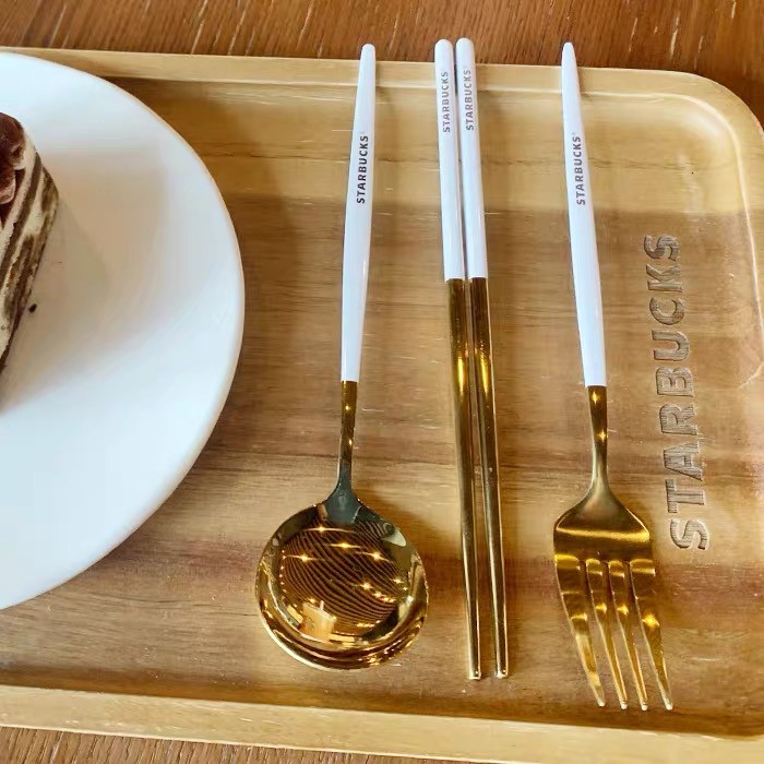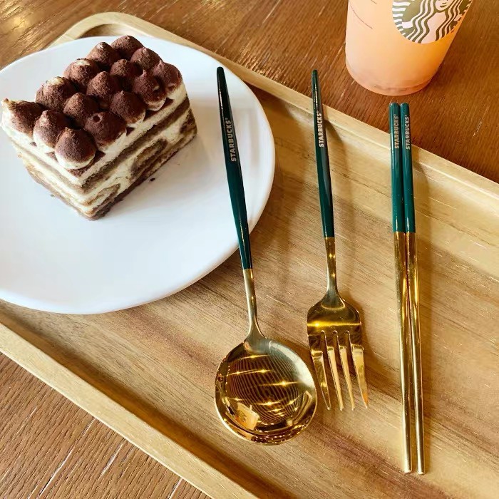 Bộ hộp muỗng đũa nĩa cá nhân Starbucks nhiều màu 3 món