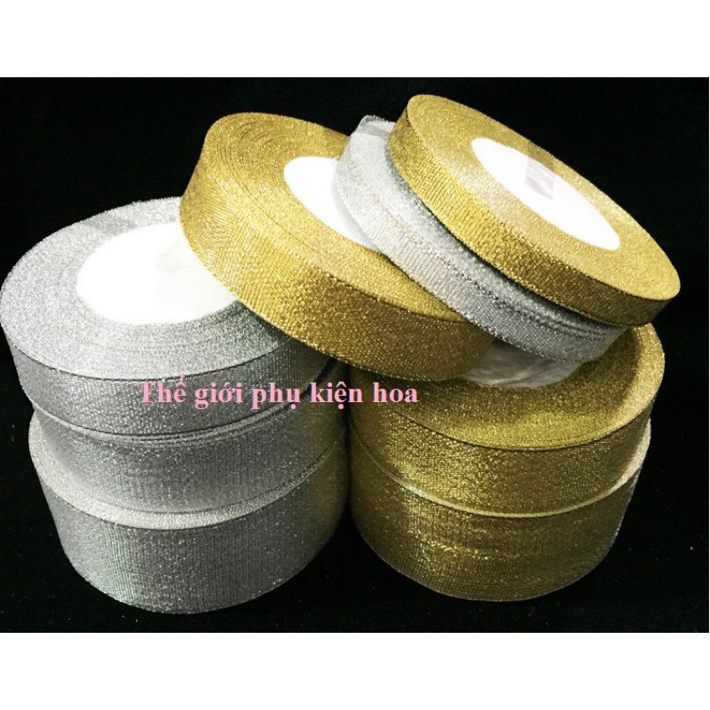 Ruy băng kim tuyến màu vàng, bạcKích thước 1cm, 2cm, 4cm dài 22m