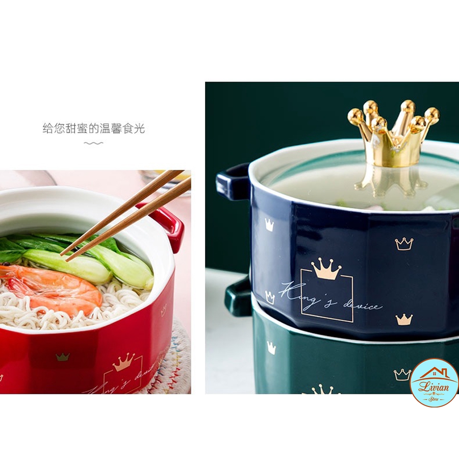 + Tô sứ có nắp vương miện thuỷ tinh trong suốt đựng canh ăn bún phở mỳ, đựng canh, hoa quả tươi, đồ nướng.., cực xinh xắn và tiện lợi.