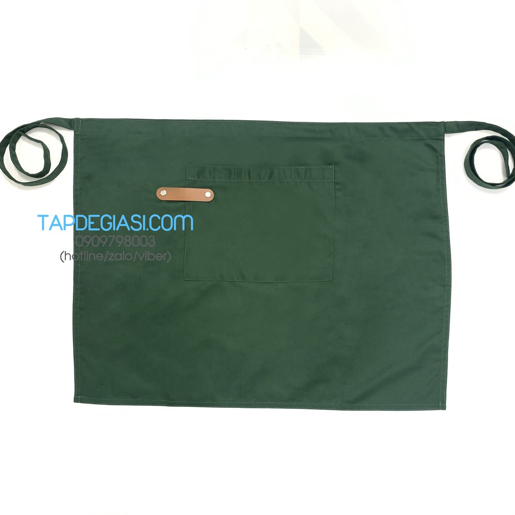 Tạp dề ngắn pha chế đủ màu kaki cotton có đính da cao cấp dành cho phục vụ quán