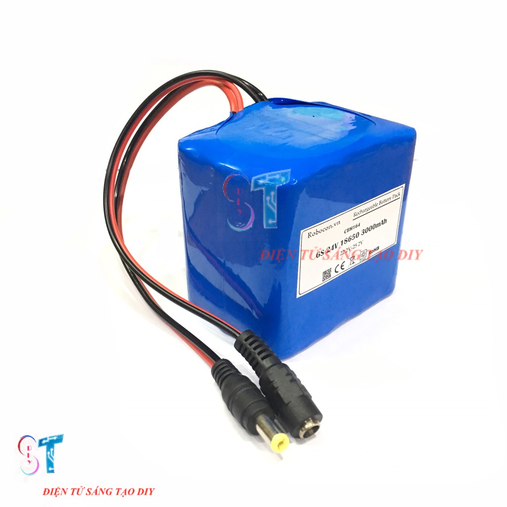 Khối pin sạc lithium 6S 2P 18650 22.2V – 25.2V 3000mAh hay ắc quy lithium, ắc quy mini, được sản xuất từ pin 18650 đóng thành pack pin 6S 24V đã bao gồm mạch sạc và bảo vệ pin để bảo vệ pin trong quá trình sạc xả, với kích thước nhỏ gọn dễ sử dụng và mang theo sử dụng như 1 nguồn điện di động.- Dùng tốt cho các thiết bị 24V.