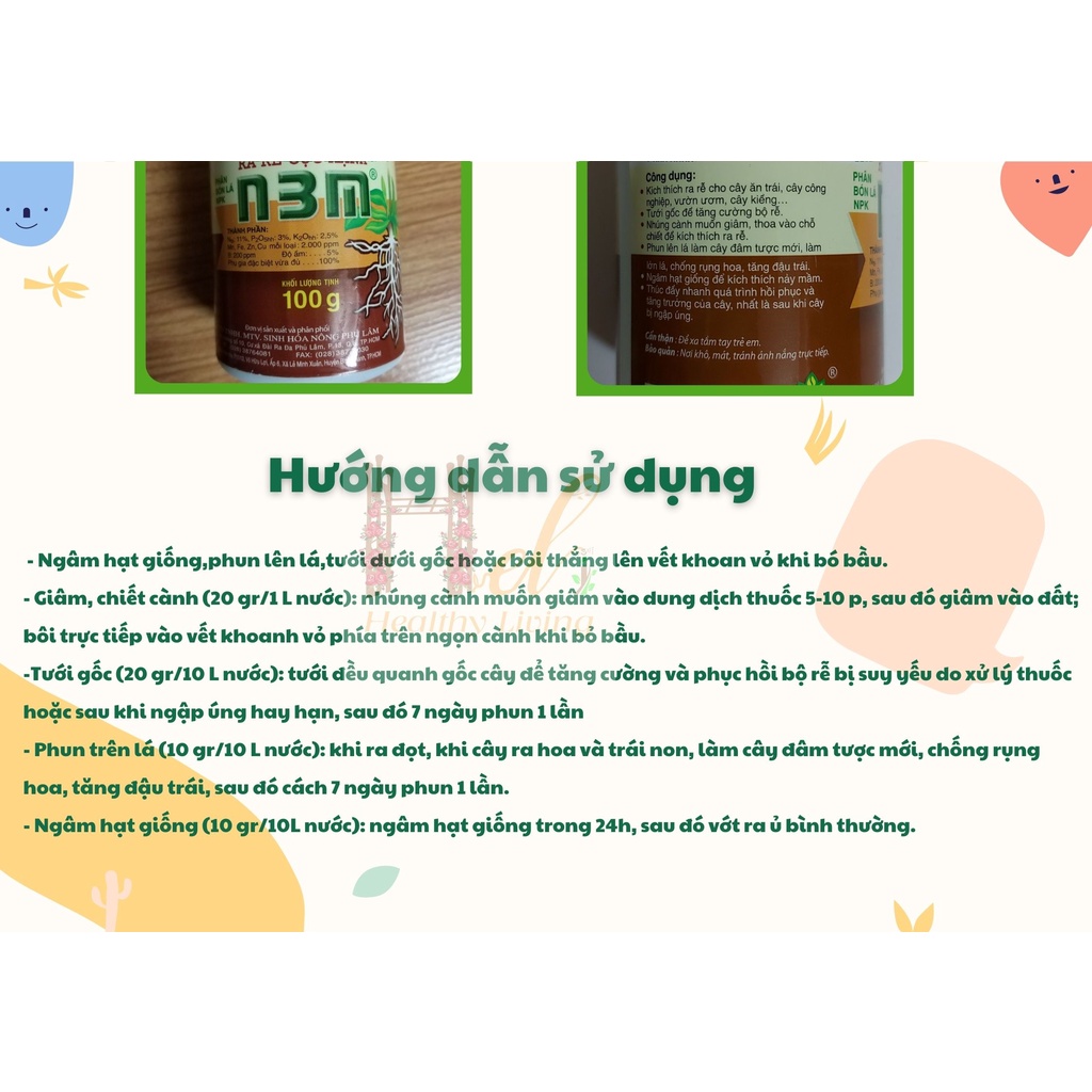 CAM KẾT HÀNG CHÍNH HÃNG, HOÀN 100% TIỀN NẾU SẢN PHẨM NHẬN ĐƯỢC KHÁC BAO BÌ QUẢNG CÁOPhân bón lá kích rễ N3M lọ 100g, siêu ra rễ cho cây trồng.