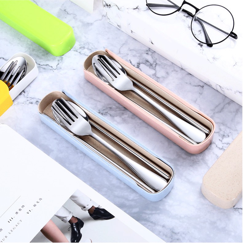Bộ thìa đũa nĩa inox 304 cho dân văn phòng, sinh viên, đi picnic dã ngoại BMD02