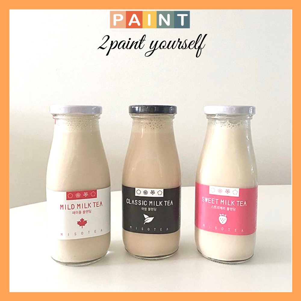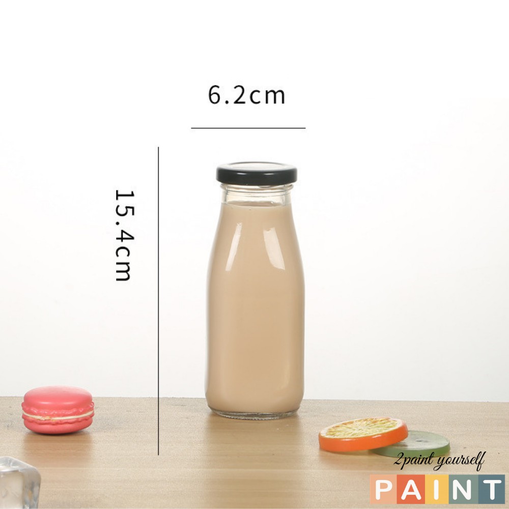 Chai thủy tinh nắp thiếc đựng nước ép, sữa hạt dáng vuông thon 330ml 2paint