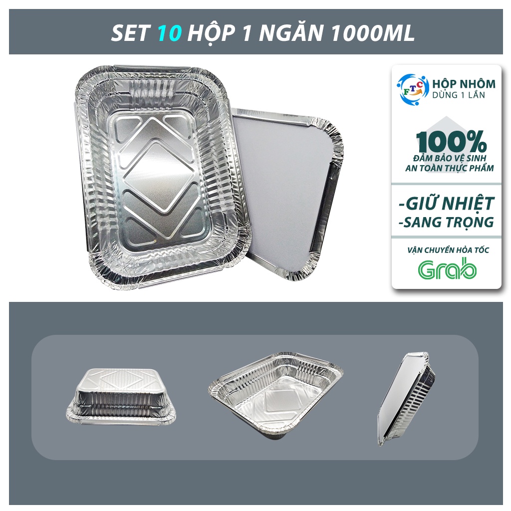 khay nhôm đựng thức ăn 1000ml - Set 10 cái / dùng 1 lần / có nắp / hàng chính hãng