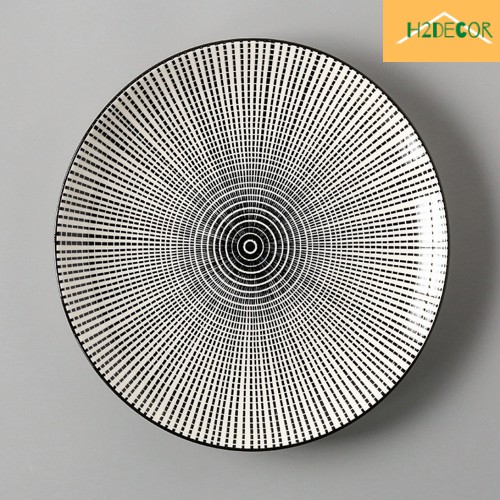 Đĩa gốm tròn phong cách nhật bản size lớn, đĩa sứ trang trí món ăn sang trọng H2decor