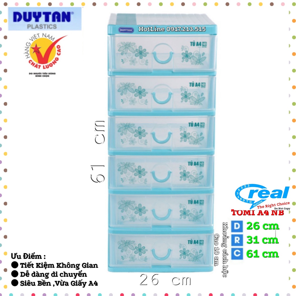 - Sản phẩm có 6, mỗi ngăn kéo có chiều cao 10 cm đều có tay cầm, linh động khi sử dụng giúp bạn dễ dàng đựng và phân loại các vật dụng cá nhân cần thiết như chìa khóa xe, dụng cụ trang điểm, ngoài ra còn có thể sử dụng làm tủ thuốc cho gia đình.