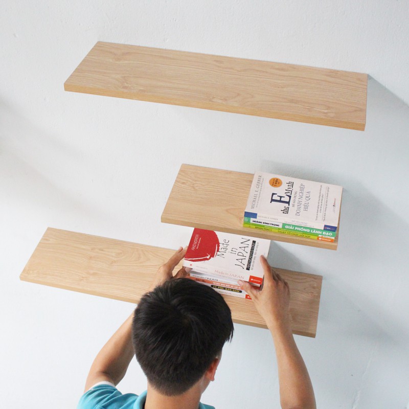 - Bộ sản phẩm đầy đủ đi kèm gồm: 3 kệ gỗ, phụ kiện treo tường, hướng dẫn lắp đặt, thước thủy (nivo mini) lấy cân bằng.