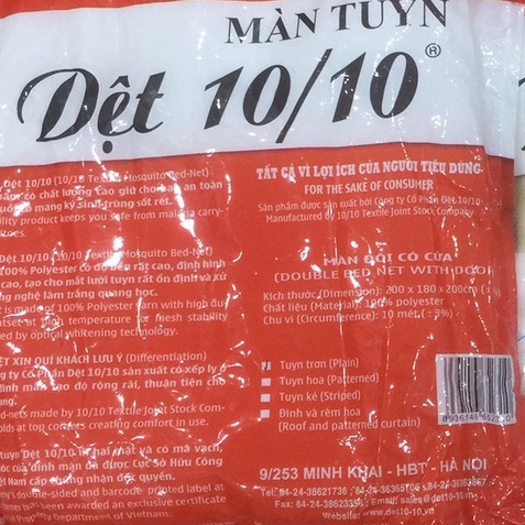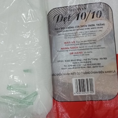 - Màn tuyn - sản phẩm của công ty Dệt 10/10 chính hãng,tại vỏ ngoài và nhãn có vạch của nhà máy gắn tại góc màn.