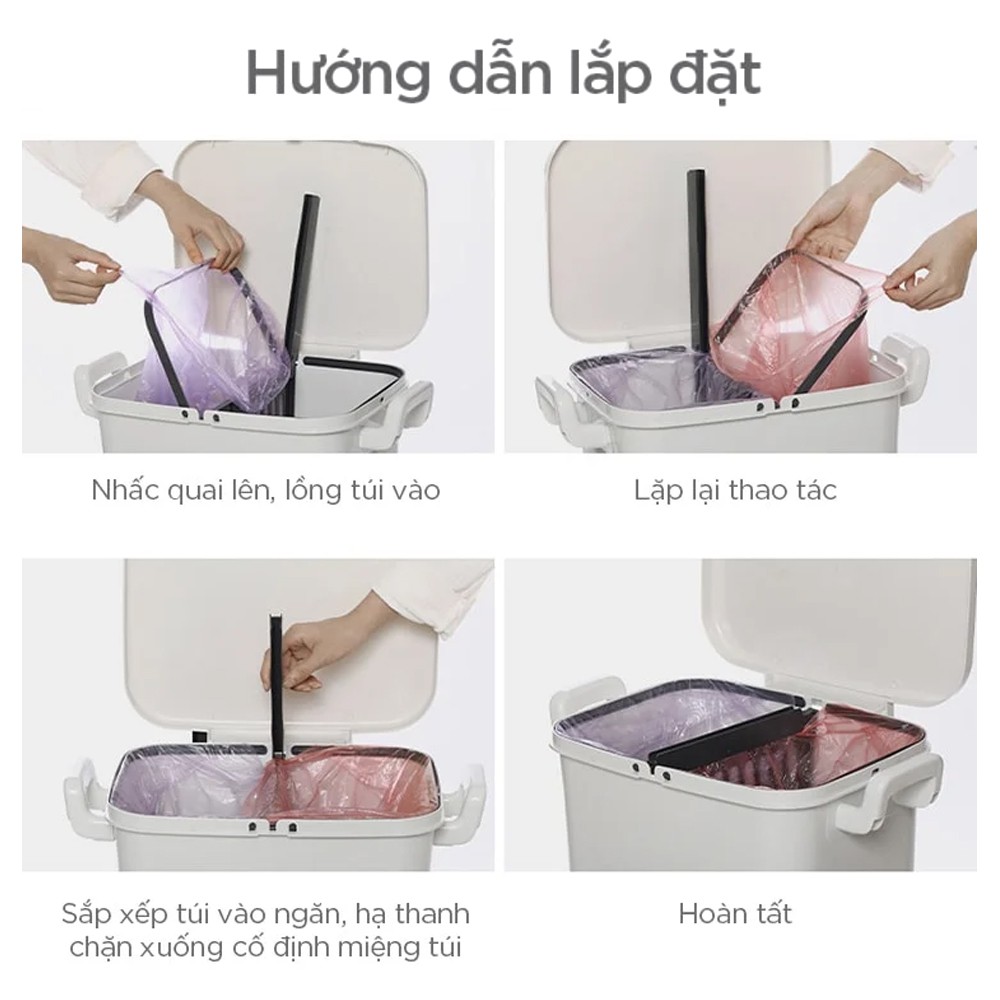 Đặc tính nổi bật: Thiết kế hai lớp - Thể tích lớn - Bánh xe 360 độ - Dễ dàng phân loại rác - Thiết kế nắp mở tiện lợi - Chất liệu an toàn
