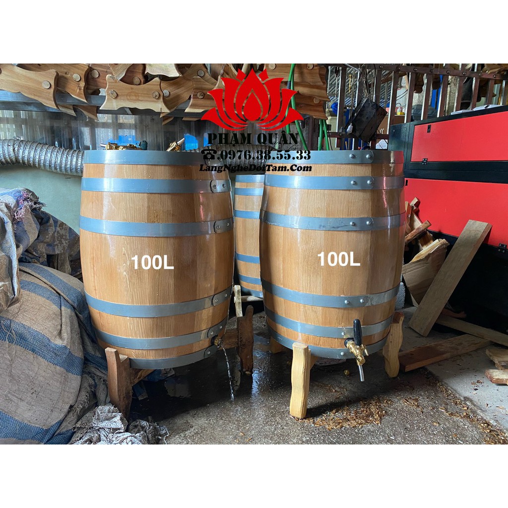 thùng rượu gỗ sồi dáng đứng 100 lít, thùng ngâm ủ rượu cam kết chuẩn gỗ sồi