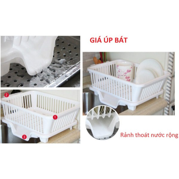 - Giá úp bát đĩa bằng nhựa có thiết kế thông minh với khay thoát nước tiện lợi giúp bát đĩa nhanh khô, giữ gìn vệ sinh cho phòng bếp.- Có các bộ phận riêng biệt để úp bát, đĩa, ống cắm thìa đũa...giúp bạn dễ dạng kỳ cọ, vệ sinh trong quá trình sử dụng