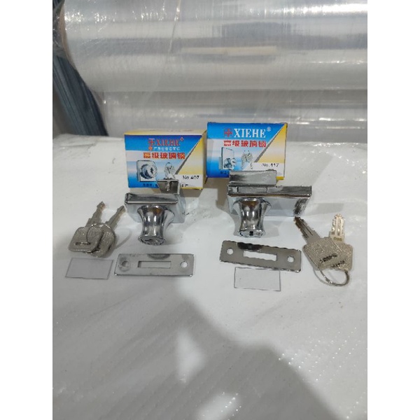 Khóa tủ kính dành cho cửa 1 cánh / 2 cánh . Chất liệu mạ Inox cao cấp . Sử dụng cho cửa từ 5_8mm.Khóa cửa 1 cánh / 2 cánh hiệu xiehe .