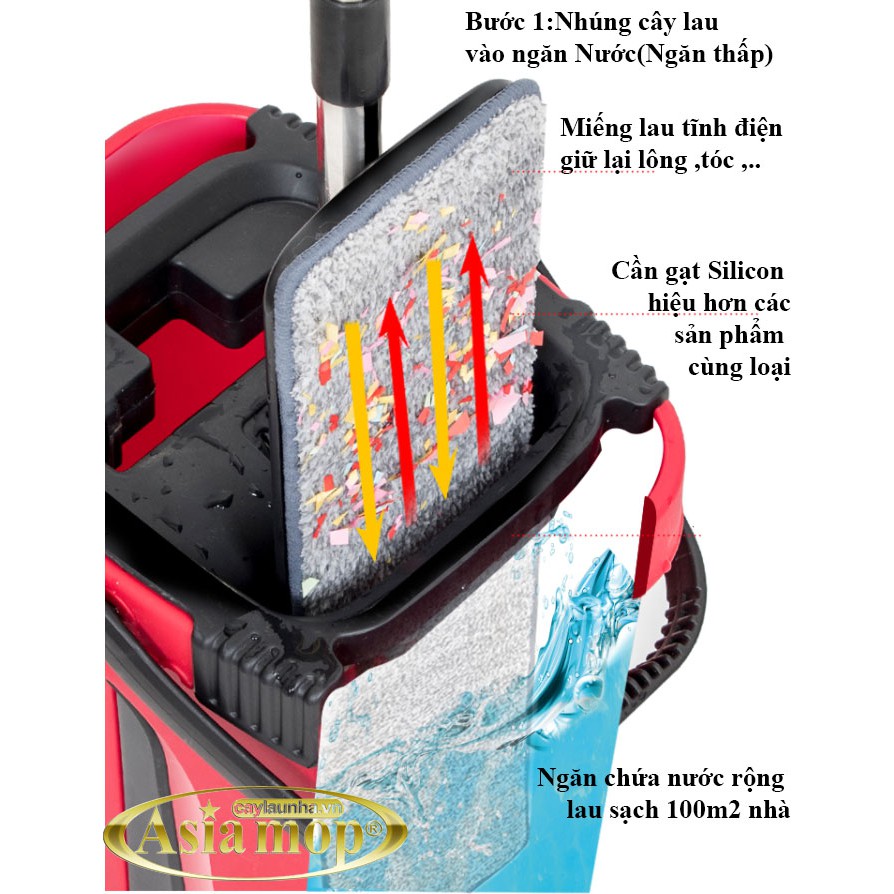 Nhà cửa & Đời sống > Dụng cụ chăm sóc nhà cửa > Cây lau nhà || Bộ Lau Nhà Thông Minh Hai Ngăn Asia Mop Z02, TẶNG Kèm 2 miếng lau deCòn hàng