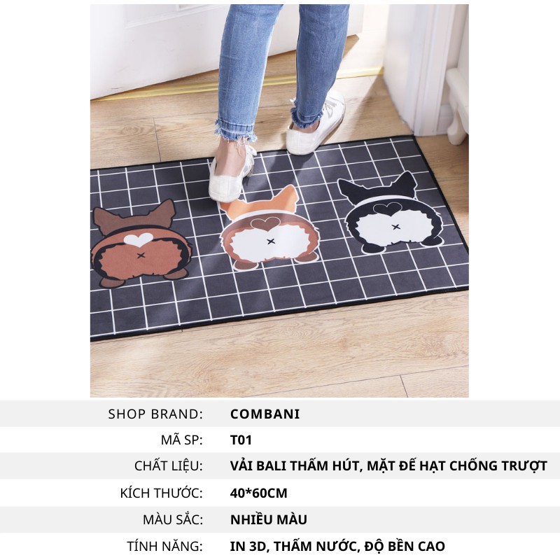 Nhà cửa & Đời sống > Trang trí nhà cửa > Thảm chùi chân || Thảm Lau Chân 3D Cao Cấp Thấm Nước Chống Trượt KT 40x60cm - COMBANI T01Còn hàng