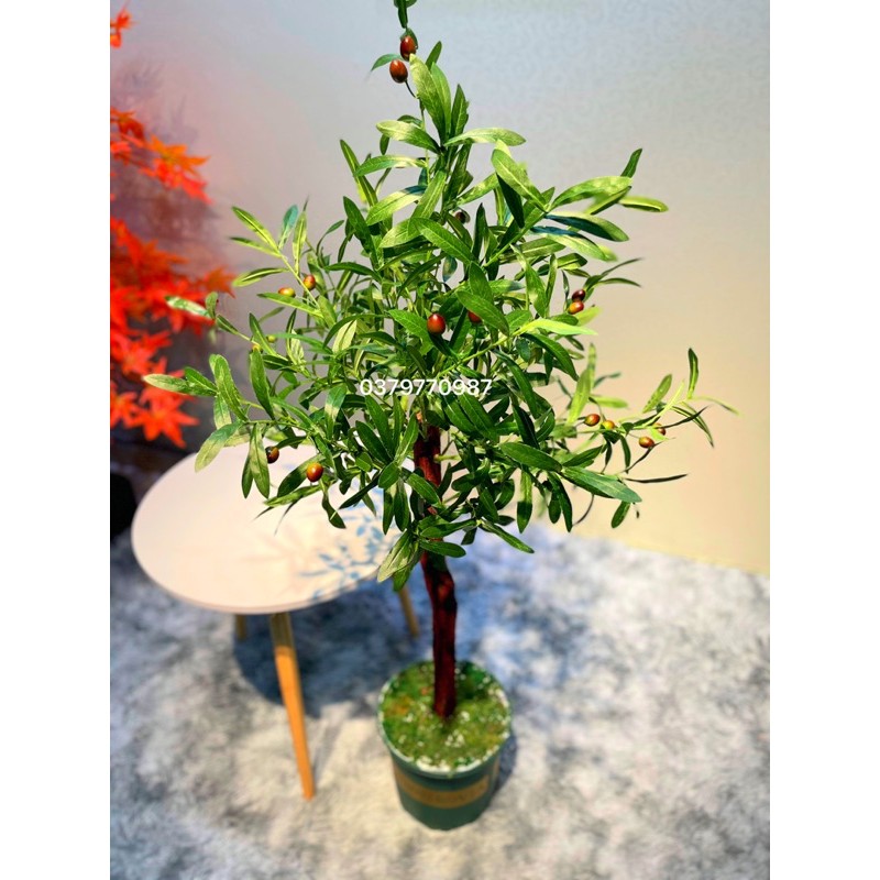 - Chất Liệu: Lá Cây Làm Từ Lụa Cao Cấp Chống Bám Bẩn, Không Mùi - Thân Cây Chắc Cực Bền - Quả Oliu PU Nhân Tạo Cao Cấp