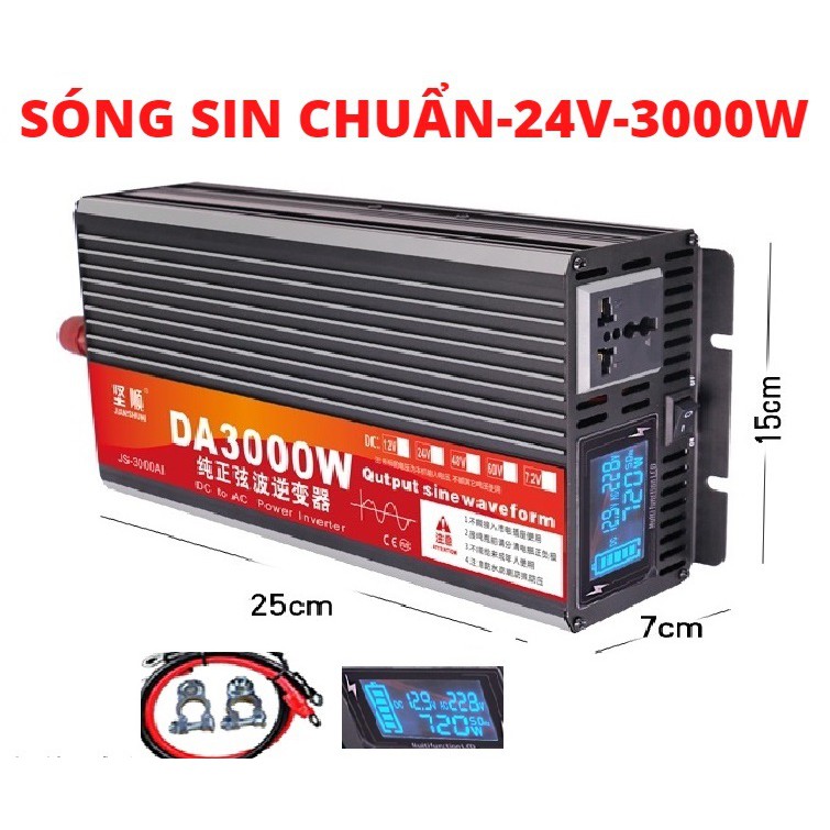 Bộ đổi điện sin chuẩn công suất 3000w 12v 24v sang 220v+ Thông số kỹ thuật :