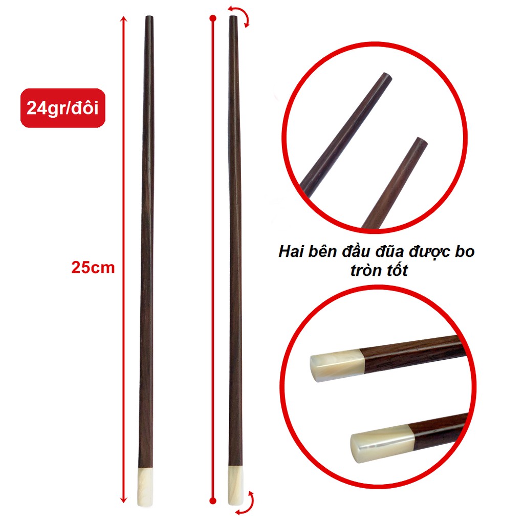 - Đầu đũa được gắn trang trí ốc nhập khẩu cao cấp, 2 bên đầu đũa được bo tròn tốt.