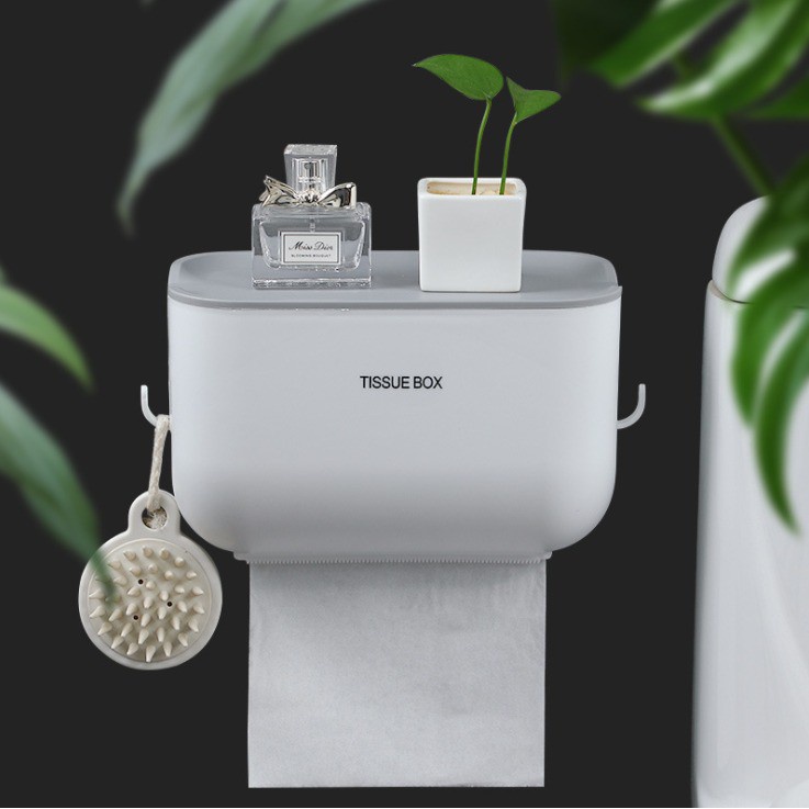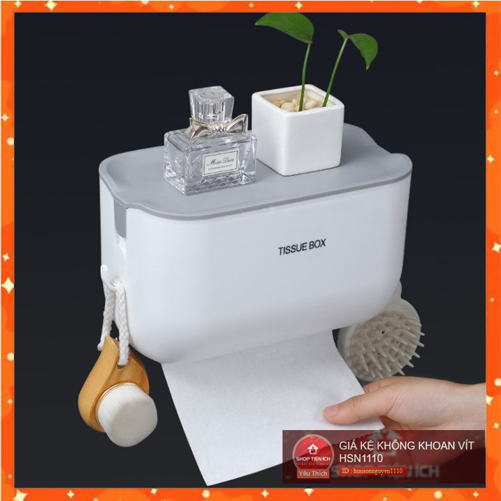 Hộp Kệ Đựng Giấy Vệ Sinh, Khăn Giấy TISSUE BOX Có Móc Treo 2 Bên (HSN)