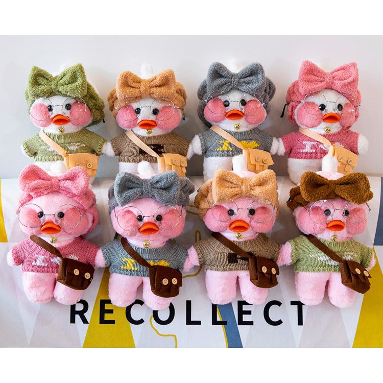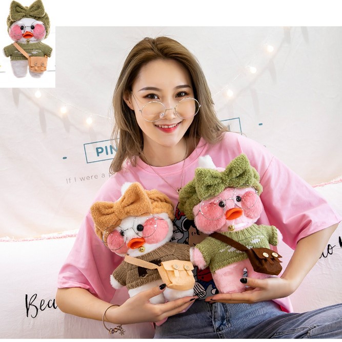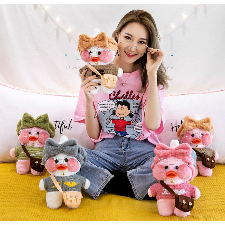 Giới thiệu Gấu Bông Vịt Lalaland Mặc Áo Len Đội Mũ Phối Túi Đeo Chéo Mang Kính