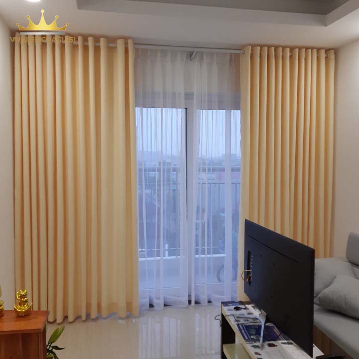 Rèm cửa sổ màu vàng kem, rèm cửa chính treo tường trang trí decor VIP12 Vuaremgiasi