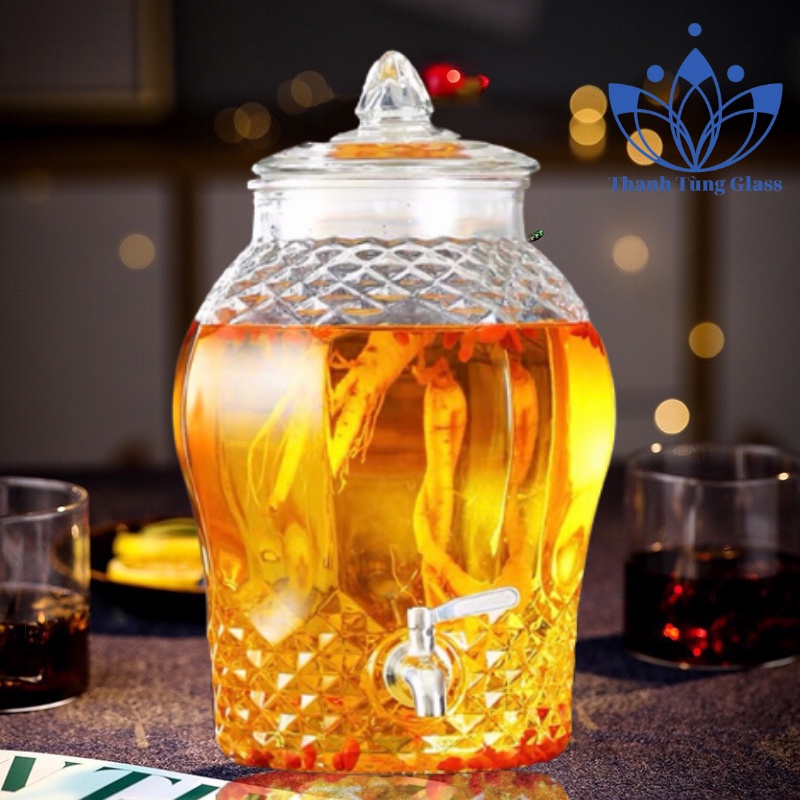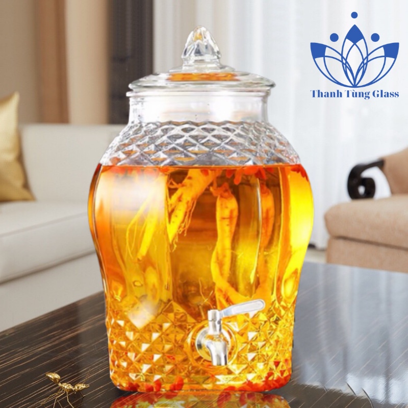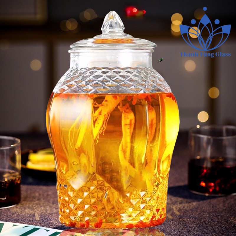 Bình Ngâm Rượu Thủy Tinh Kim Cương 10 Lít kiểu dáng đẹp, lạ, độc đáo vừa để ngâm thành phẩm quý, vừa để trang trí nội thất gia chủ.