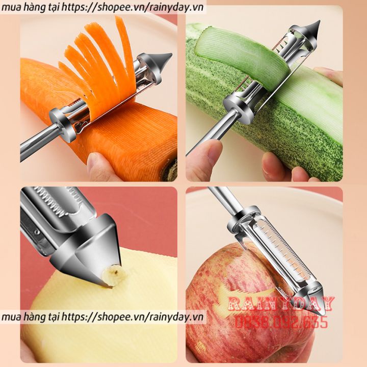 Bộ nạo rau củ đa năng, dụng cụ bào sợi rau củ quả inox gọt vỏ đa năngĐặc điểm nổi bật: