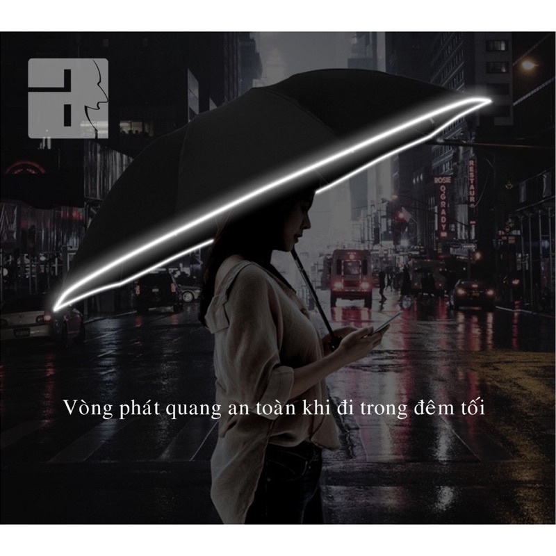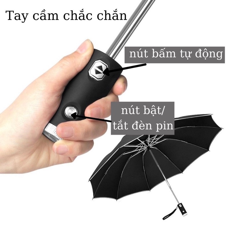 [Hàng Đắt] Ô, Dù Tự Động Chống Tia UV, Viền Phản Quang Kết Hợp Đèn Pin