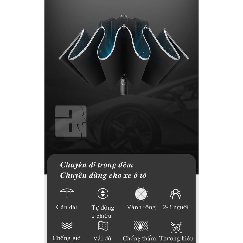 Giới thiệu [Hàng Đắt] Ô, Dù Tự Động Chống Tia UV, Viền Phản Quang Kết Hợp Đèn Pin