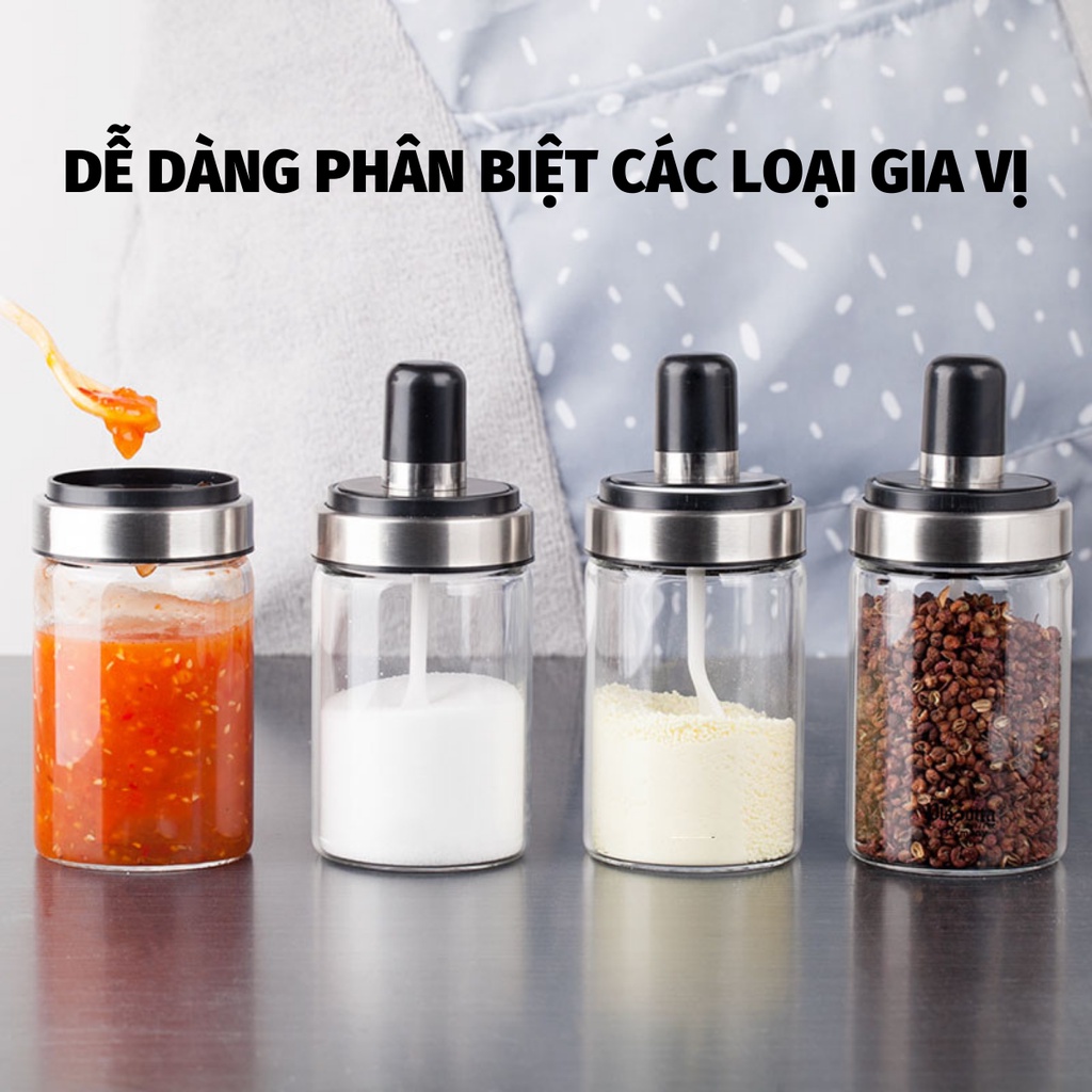 Hũ Đựng Gia Vị, Lọ Đựng Gia Vị Có Thìa Gắn Liền Tiện Dụng Nhà Bếp