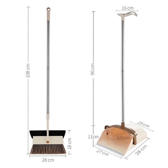 Chổi được thiết kế gồm 1 chổi và 1 hốt rác có gạt nước vô cùng tiện dụngKích thước nhỏ gọn, không chiếm diện tích