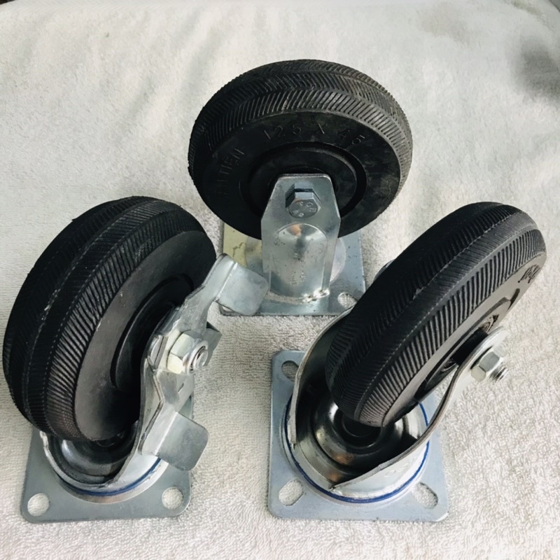 @ Bánh 1 tấc 3 (Đường kính bánh 125x38mm, tổng chiều cao cả càng 150mm) có 3 loại : loại đứng cố định, xoay 360 và 360 độ có khoá