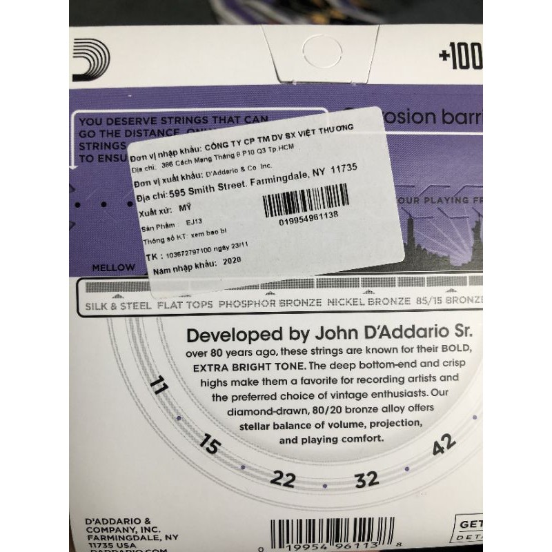 Sở thích & Sưu tầm > Nhạc Cụ & Phụ Kiện > Phụ Kiện Âm Nhạc || Dây đàn guitar acoustic Daddario EJ13 Việt Thương Music chính hãng USA TYTYmusicCòn hàng