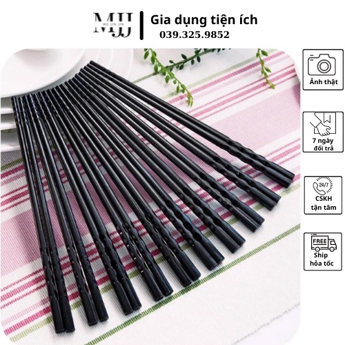 Nhà cửa & Đời sống > Bộ đồ bàn ăn > Bộ dao kéo || [Mã LIFEXANH03 giảm 10% đơn 500K] Bộ 10 đôi đũa nhựa xoắn chống trơn trượt, chịu nhiệt cao màu đen.Còn hàng