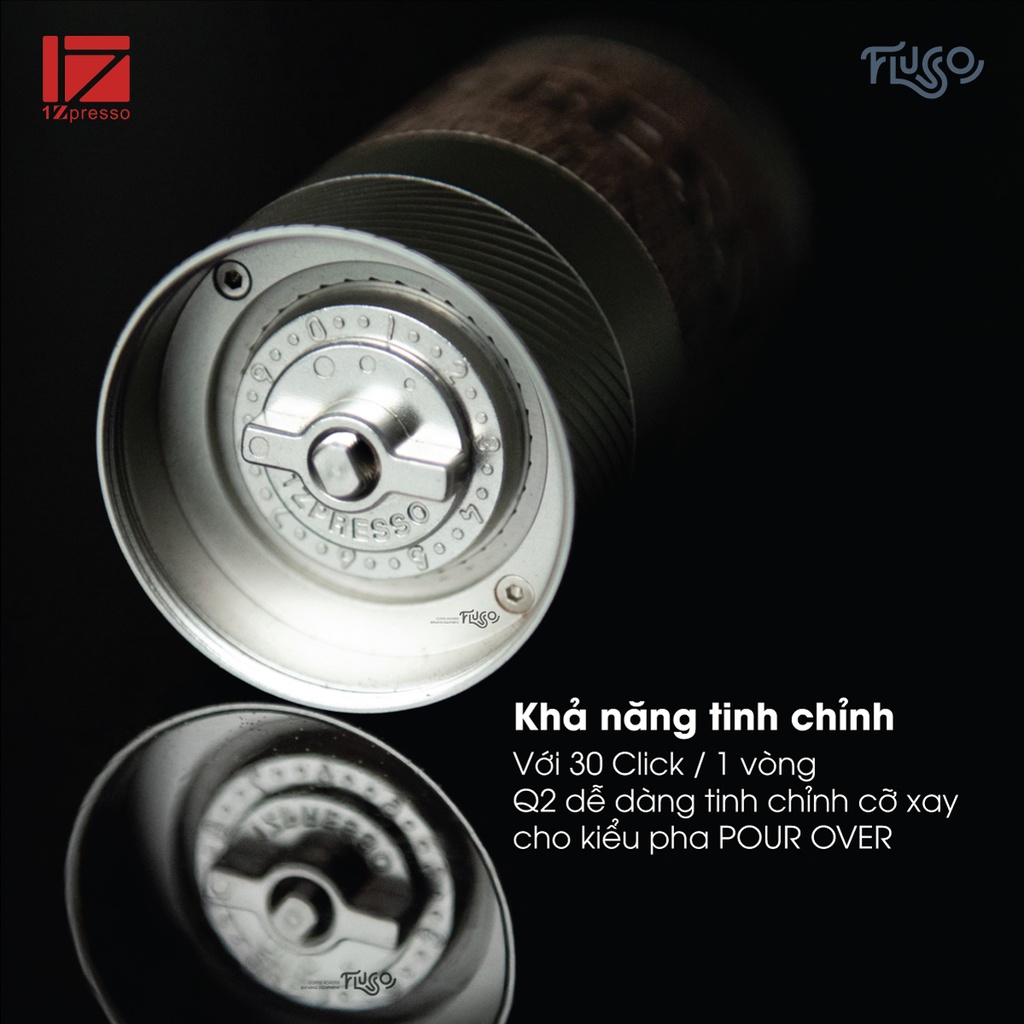 - Về khả năng tinh chỉnh kích thước bột: 1Zpresso không hề kém cạnh khi có cho mình 30 click/vòng hoàn toàn đáp ứng đủ nhu cầu của những người chơi cà phê Pour Over.