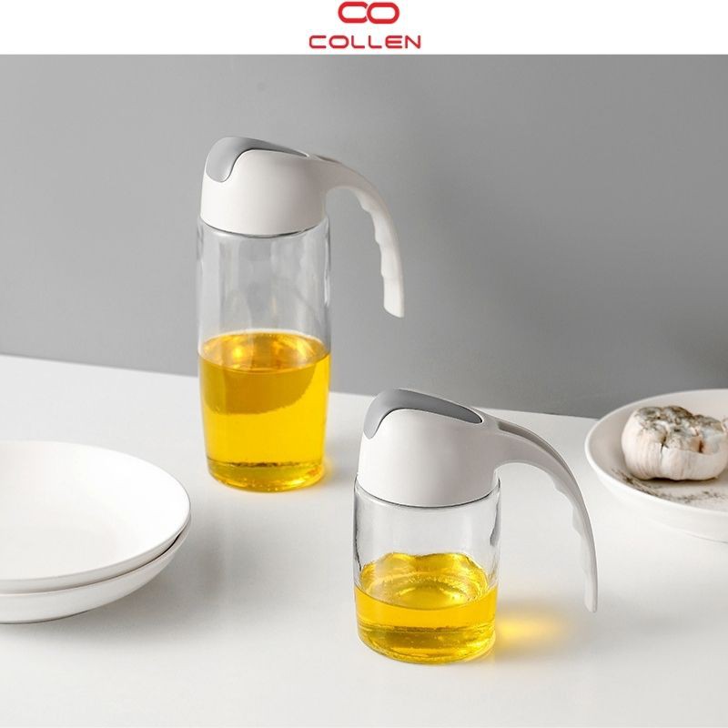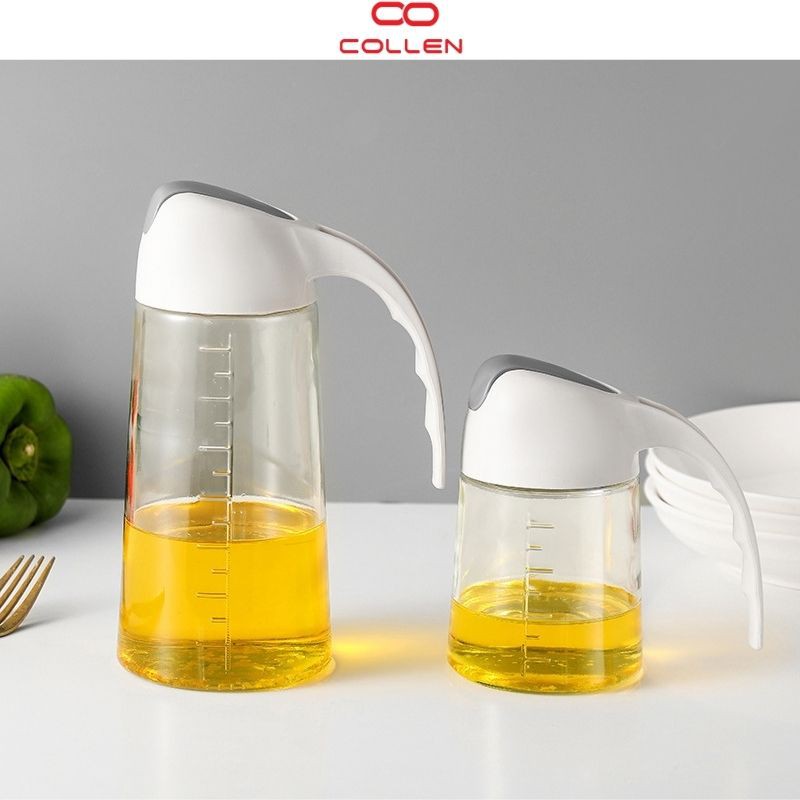 Chai đựng dầu ăn mở nắp tự động 630ml, bình đựng dầu ăn thủy tinh COLLENLIFE