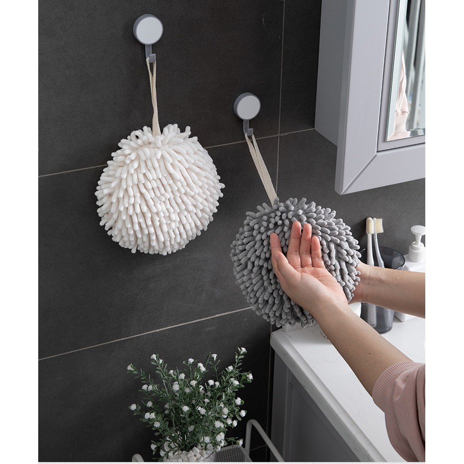 Khăn lau tay nhà bếp với kiểu dáng hình quả cầu bông dễ thương, xinh xắn, ngộ nghĩnh cho đôi tay bạn sạch sẽ mỗi ngày và không gian nhà bếp bạn thêm sinh động. Chất liệu sợi bông thấm hút mềm mại với da tay. Khăn bông lau bằng sợi nhỏ có thể giặt bằng máy và có thể được tái sử dụng hàng trăm lần mà không làm mất độ thấm hút. Để giữ được độ bền của sản phẩm, hãy giặt khăn trong nước lạnh.Màu sắc: SP có 2 màu trắng và xám.