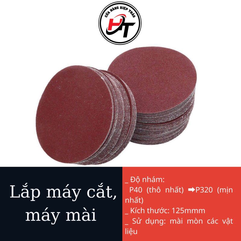 Nhà cửa & Đời sống > Dụng cụ & Thiết bị tiện ích > Dụng cụ > Giấy nhám, máy chà nhám và phụ kiện || Giấy nhám tròn mịn thô chà gỗ giấy ráp dính 125mm GNT125Còn hàng