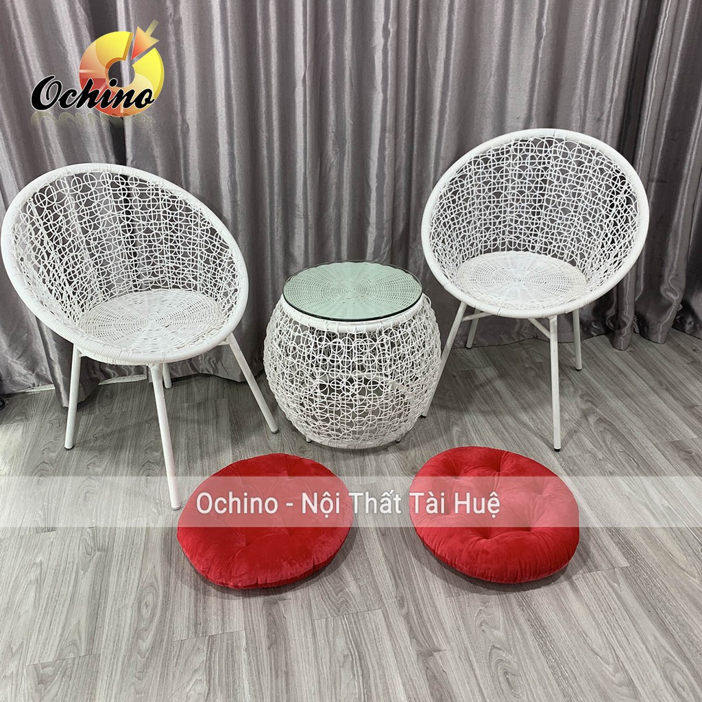 - Ghế ban công dây nhựa giả mây đan rối chuẩn.