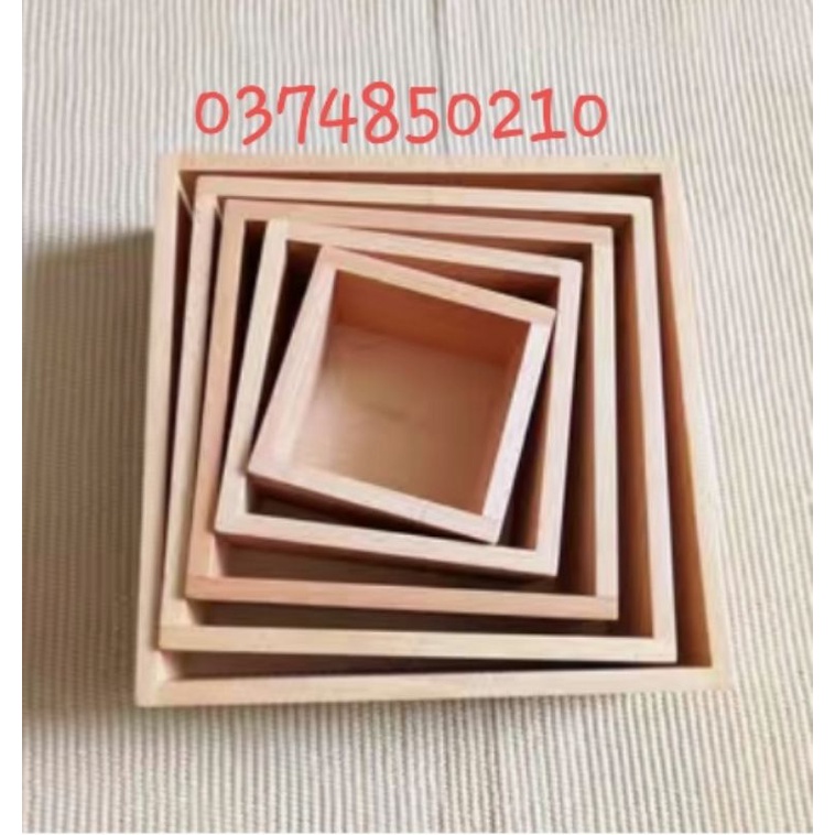 Kích thước khuôn bánh cao 5cm, vuông từ 10cm -> 20cm.