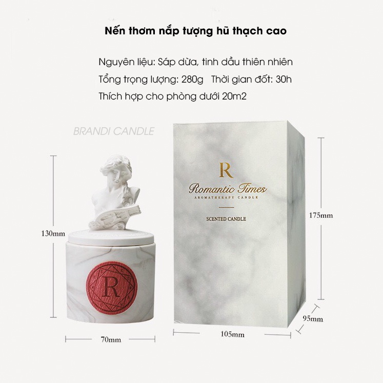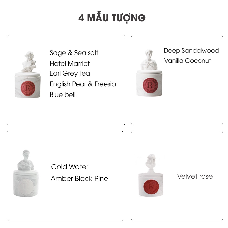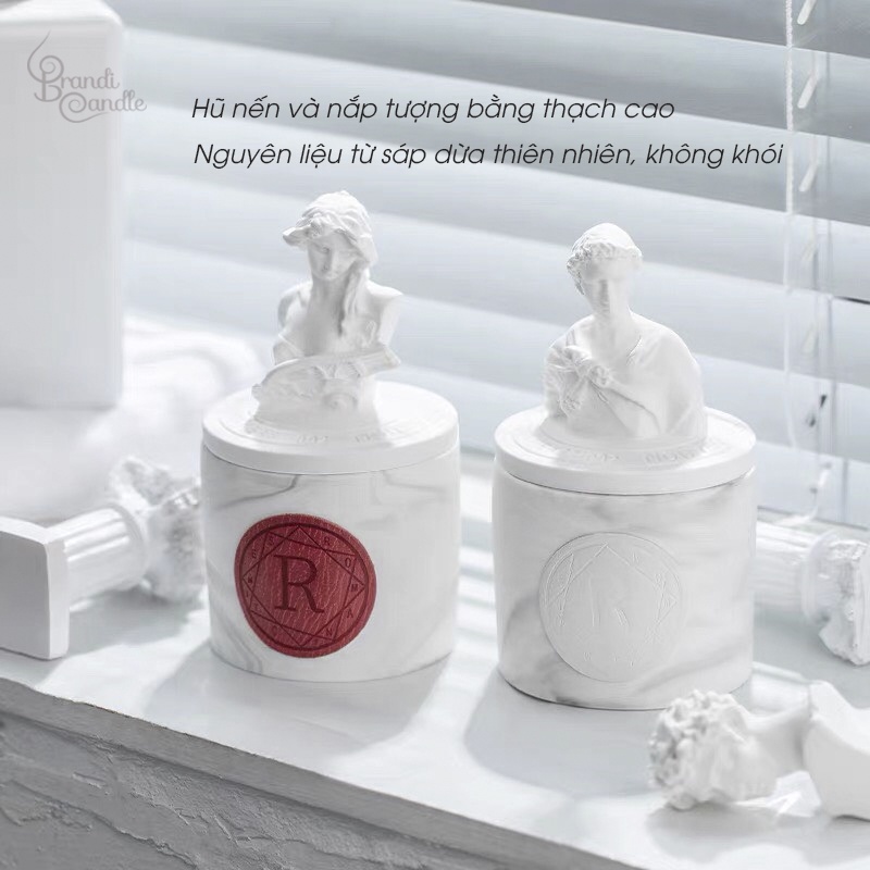 🌿 Nến thơm trang trí không khói 𝓡𝓸𝓶𝓪𝓷𝓽𝓲𝓬 màu trắng nắp tượng mang hơi hướng thời kỳ phục hưng vô cùng ấn tượng.⏩ Tổng trọng lượng: 330g