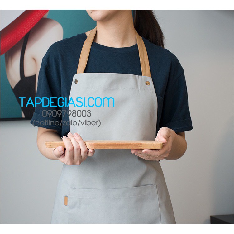 Giới thiệu Tạp dề yếm pha chế Nam nữ dành cho phục vụ vải kaki cotton cao cấp 3 nút bấm